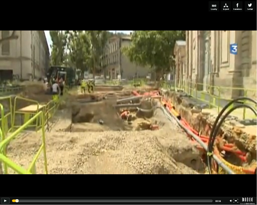 L’effervescence règne sur le chantier des fouilles archéologiques, place Albert 1er à Montpellier, le mardi 19 août 2014. Capture d’écran sur un reportage diffusé par France 3 Sud le même jour