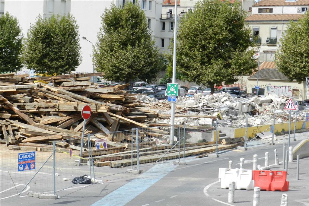 Le dernier quai couvert de l’ancienne gare des marchandises petite vitesse de Montpellier n’est plus qu’un gros tas de gravats. Photo prise le samedi 30 août 2014. Copyright : Anje34