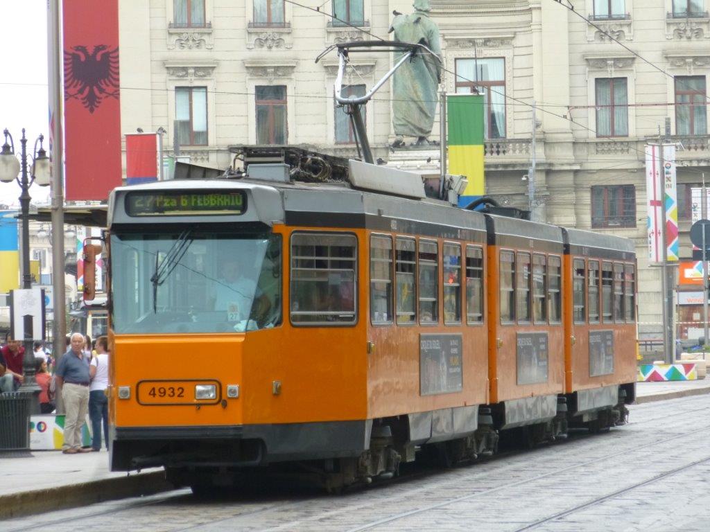 A Milan, la rame 4932 Jumbotram I Fiat Ferroviaria est photographiée sur la place Cordusio, le dimanche 20 juillet 2014. Copyright : Bernard P