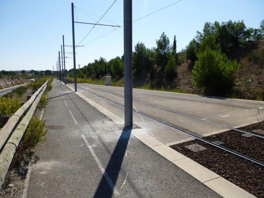 Un nouveau mât support de lignes aériennes de contact a remplacé un précédent mât plié par la rame 2057 Citadis 302 Alstom en perdition, le mercredi 24 septembre 2014. Photo prise le vendredi 26 septembre 2014. Copyright : Louis Ferdinand