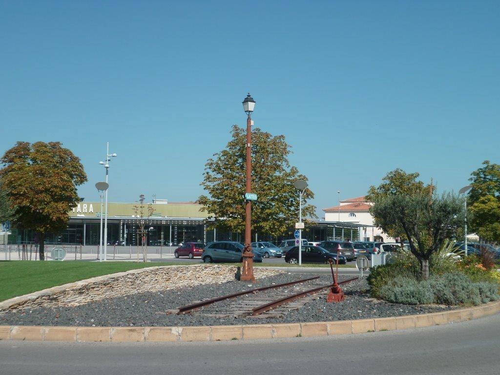 A Lattes, un rond-point dédié au souvenir du Petit Train de Palavas qui passait là, sur la parcelle DW 23 propriété du département de l’Hérault. Photo prise le samedi 27 septembre 2014. Copyright : Edouard Paris