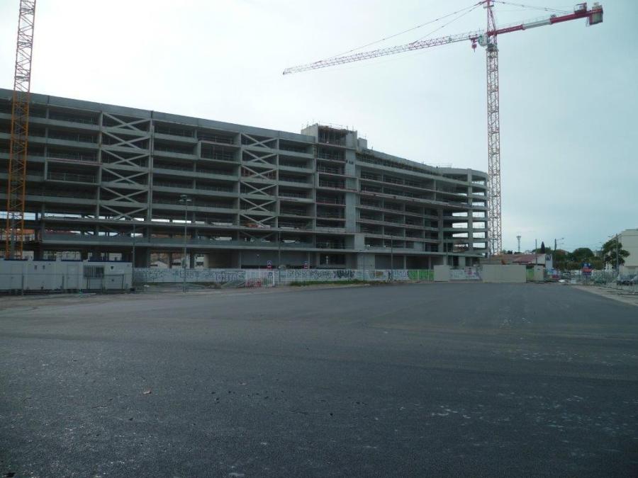 A Montpellier, ZAC Le Nouveau Saint-Roch, le dimanche 5 octobre 2014, la surface plane était recouverte de bitume mais les emplacements des véhicules automobiles n’étaient pas encore tracés au sol. Copyright : Edouard Paris