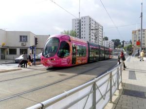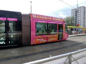 - Pelliculage très réussi pour la campagne « Octobre Rose », appliqué sur les motrices de la rame 2048 Citadis 302 Alstom, photographié le jeudi 9 octobre 2014. Copyright : Anje34