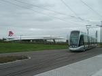 - La rame 714 Citadis 302 Alstom approche du terminus « Athis-Mons – Porte de l’Essonne » du T7. Sur la gauche, le Concorde 02 F-WTSA (aux couleurs de British Airways sur un côté et d’Air France sur l’autre côté), de l’ancien musée Delta Athis Paray Aviation. Photo prise le jeudi 23 octobre 2014. Copyright : Edouard Paris