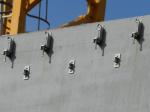 - Zoom sur les fixations où seront accrochés les rideaux de briques de céramique percés sur 50 % de leur surface. Photo prise le mercredi 5 novembre 2014. Copyright : Anje34