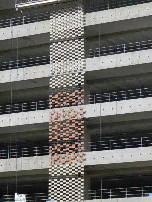 Vue plus détaillée du premier rideau de briques de céramique percé sur 50 % de sa surface. Photo prise le mercredi 5 novembre 2014. Copyright : Anje34