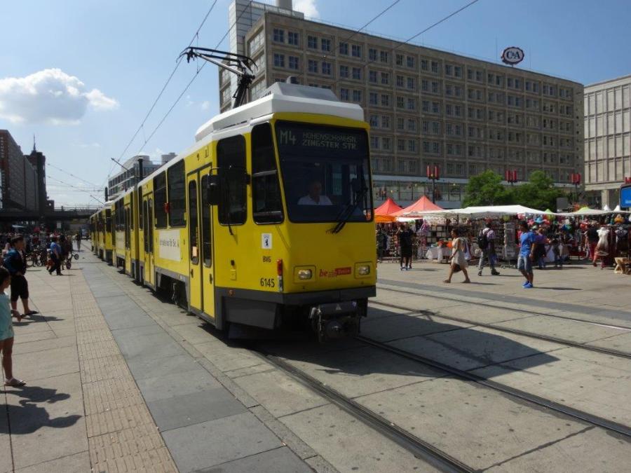 Un jumelage de rames KT4D ČKD Tatra, 6145 en tête, photographié sur Alexanderplatz à Berlin, le mercredi 6 août 2014. Une photo historique dans la mesure où la 6145 a été retirée du service au mois d’octobre 2014. Copyright : Indiana J