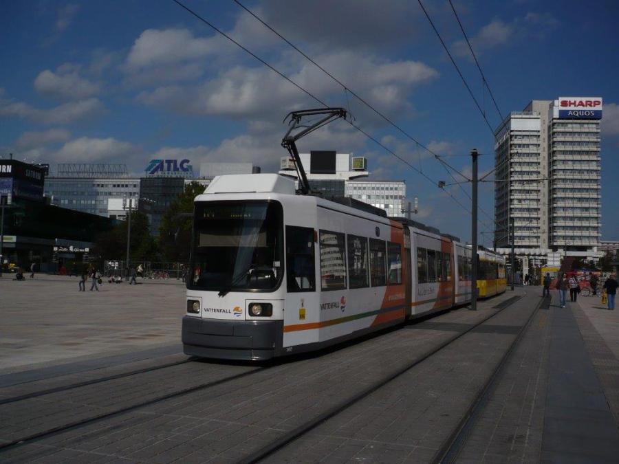 Un jumelage de rames unidirectionnelles GT6N1 Serie AEG, 1102 en tête, est photographié sur Alexanderplatz à Berlin, le jeudi 20 septembre 2007. Copyright : Edouard Paris