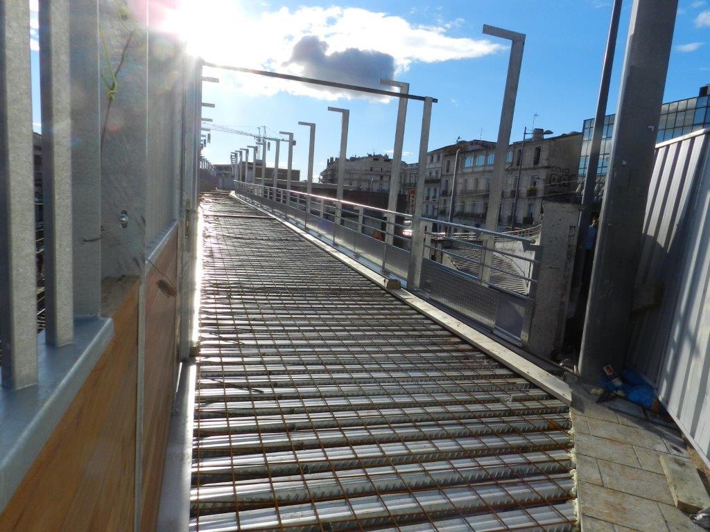 Aspect de la passerelle Gare Saint-Roch – Pont de Lattes, le samedi 15 novembre 2014, avant le coulage du béton. Copyright : Anje34