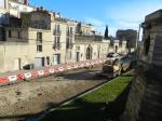 - Chantier de bouclage de la ligne 4 de tramway tout en haut du boulevard du Jeu-de-Paume à Montpellier, le jeudi 8 janvier 2015. Copyright : Anje34