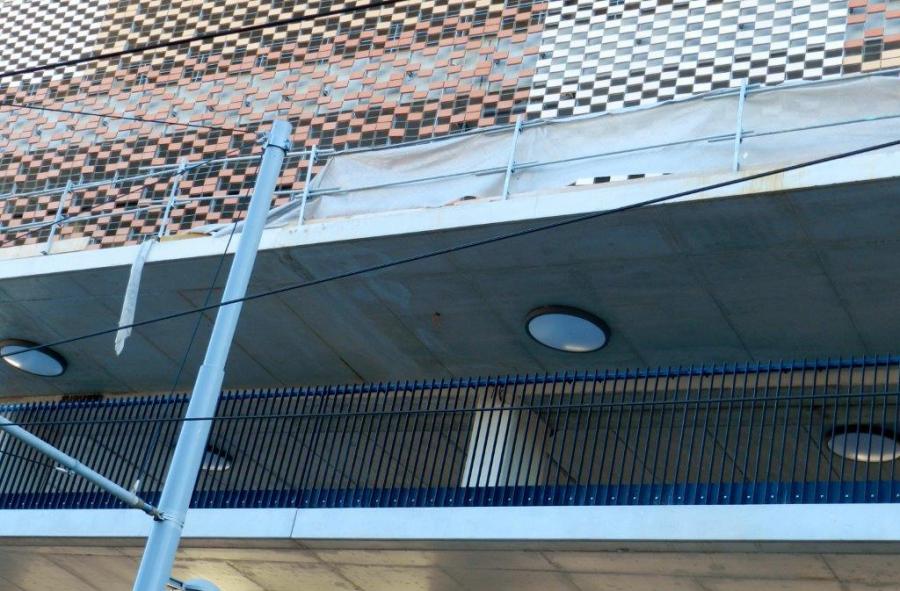 Photo d’un des plafonniers devant éclairer les niveaux du futur parking silo Le Nouveau Saint-Roch, le jeudi 8 janvier 2015. Copyright : Anje34