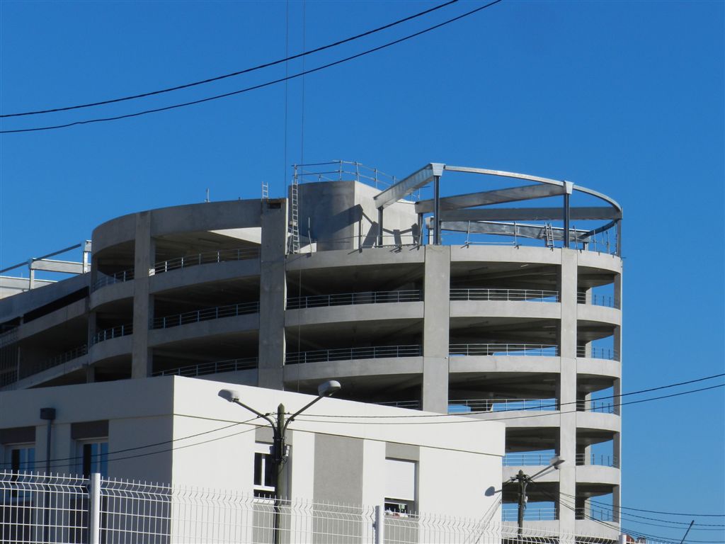 Vue rapprochée du sommet de la rampe hélicoïdale du futur parking silo Le Nouveau Saint-Roch à Montpellier, le lundi 12 janvier 2015. Copyright : Anje34