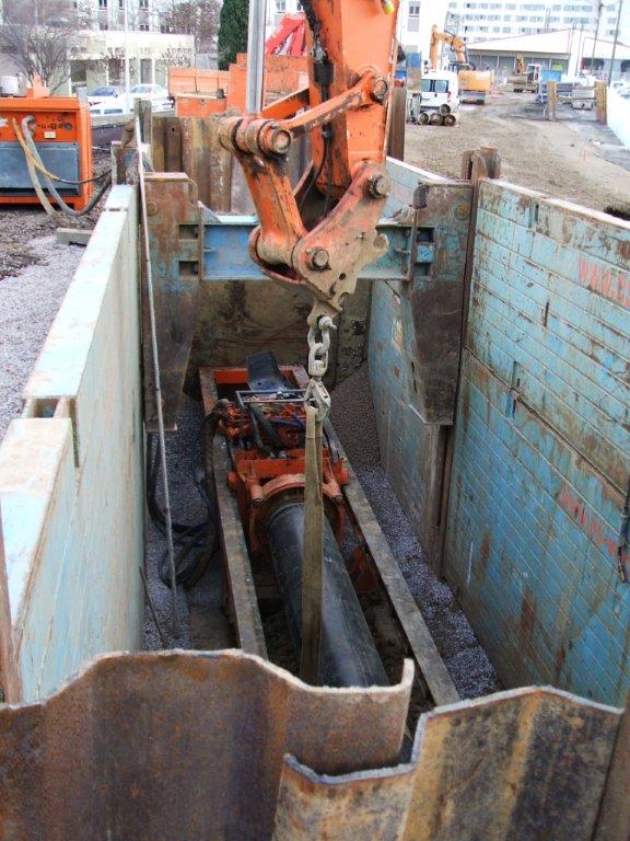 Puits de forage de la conduite d’eau potable devant alimenter la ZAC Le Nouveau Saint-Roch à Montpellier à partir de l’avenue de Maurin. Photo prise le mardi 20 janvier 2015. Copyright : Anje34
