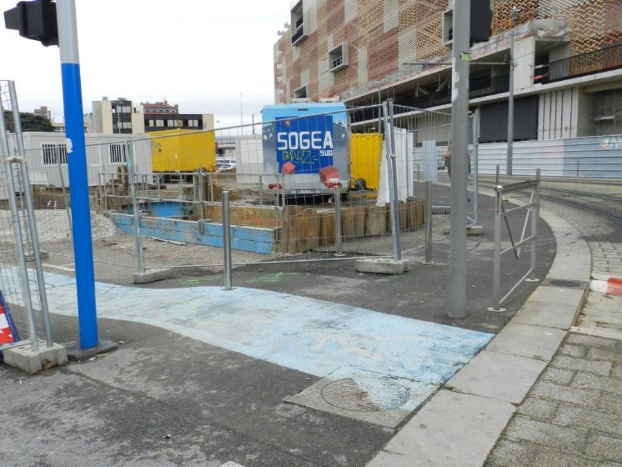 C’est au bout de la rue Alexandra David-Néel à Montpellier que la conduite d’évacuation des eaux usées de la ZAC Le Nouveau Saint-Roch passera sous les voies communes aux lignes 2 et 4 de tramway. Photo prise le mercredi 21 janvier 2015. Copyright : Anje34