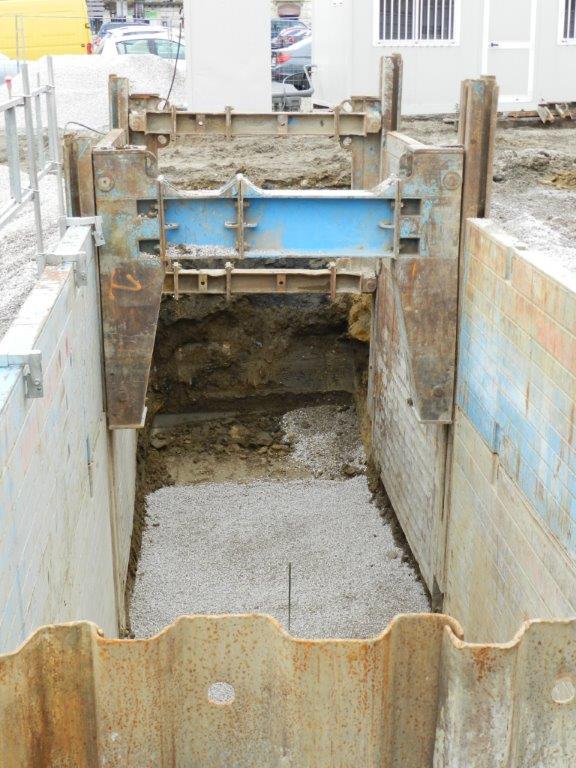 Futur puits de forage à partir duquel la conduite d’évacuation des eaux usées de la ZAC Le Nouveau Saint-Roch à Montpellier sera placée pour son passage sous les voies communes aux lignes 2 et 4 de tramway. Photo prise le mercredi 21 janvier 2015