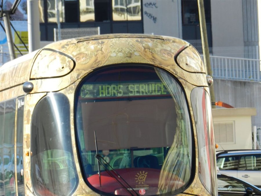 Même en temps de circulation normale, il n’est pas rare de voir les girouettes afficher la mention « Hors Service ». Photo prise le lundi 12 janvier 2015. Copyright : Anje34
