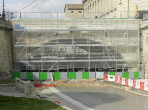 Le chantier du bouclage de la ligne 4 de tramway progresse surtout du côté du boulevard du Professeur Louis-Vialleton à Montpellier. Plus bas, au sud-est, sur le boulevard du Jeu-de-Paume, entre la boutique Nespresso et la rue Marceau, quatre palmiers de grande hauteur, installés début juin 2013, ont été enlevés pour être replantés le long de l’allée Henri II de Montmorency. A l’opposé, le bas du boulevard Henri IV est désormais interdit à toute circulation depuis le début de la semaine et le site des fouilles archéologiques de la place Albert-1er a été recouvert.