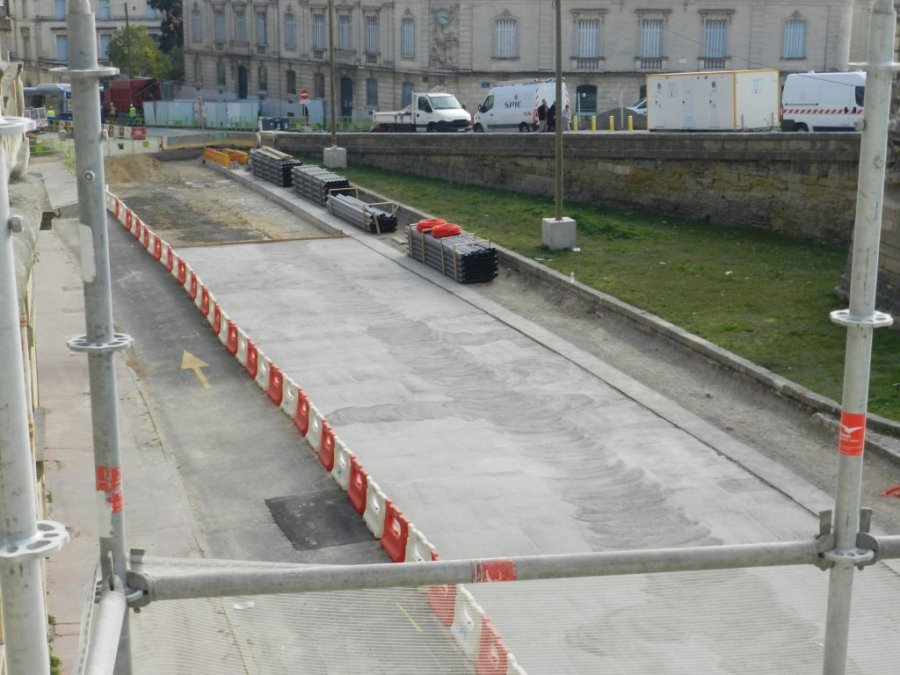 Vue de la partie sud du boulevard du Professeur Louis-Vialleton à Montpellier, le jeudi 12 février 2015, où le béton de la plateforme du tramway a été coulé. Copyright : Anje34
