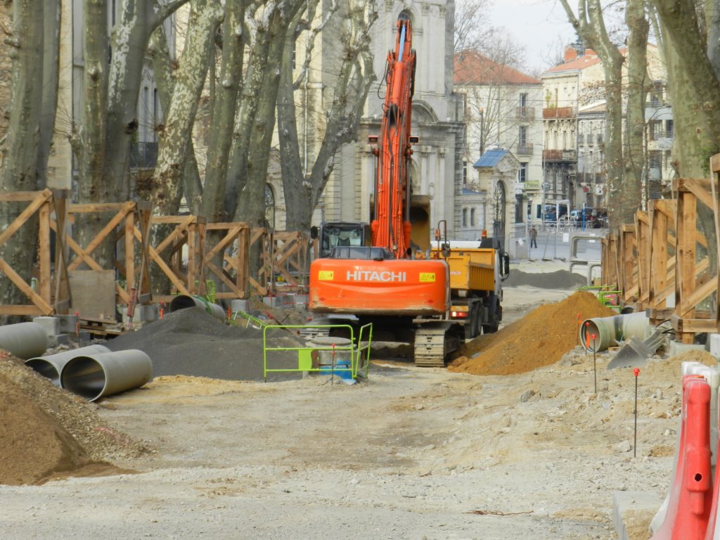 Circulation désormais interdite au bas du boulevard Henri IV à Montpellier, chantier de bouclage de la ligne 4 de tramway oblige. Photo prise le jeudi 12 février 2015. Copyright : Anje34