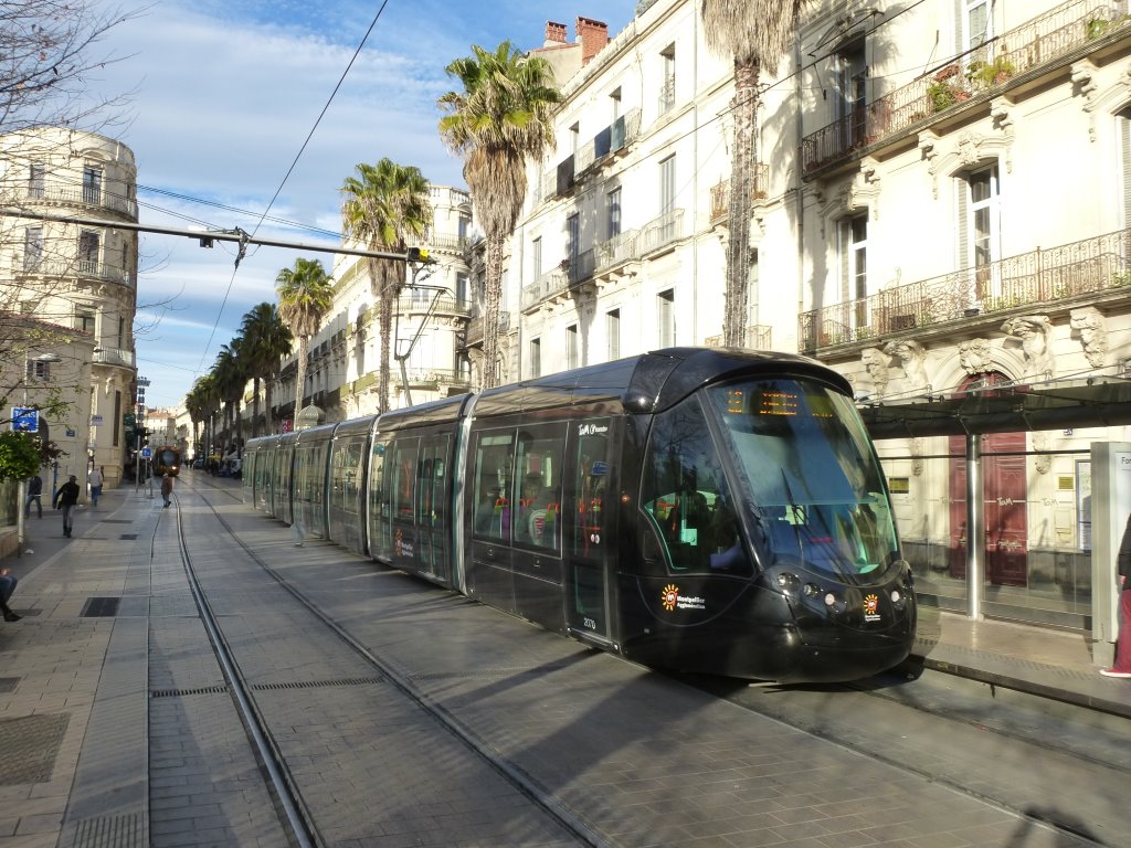 La rame 2070 Citadis 402 Alstom est photographiée à la station « Gare Saint-Roch » commune aux lignes 1 et 2 alors qu’elle opère sur cette dernière ligne, le mardi 3 janvier 2015. Copyright : Louis Ferdinand