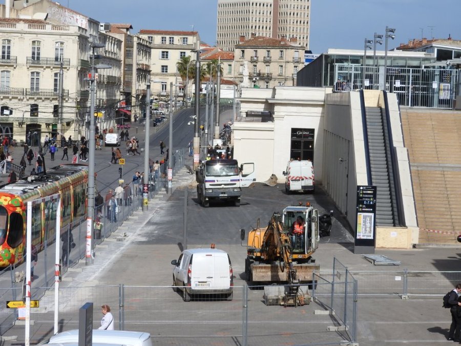 Gare Saint-Roch à Montpellier, vue sur le parvis en service depuis le mardi 18 juin 2013. Photo prise le mardi 3 mars 2015. Copyright : Anje34