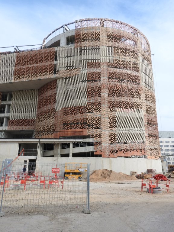 Encore un petit effort et l’habillage du futur parking silo Le Nouveau Saint-Roch sera complet. Photo prise le mardi 10 mars 2015. Copyright : Anje34