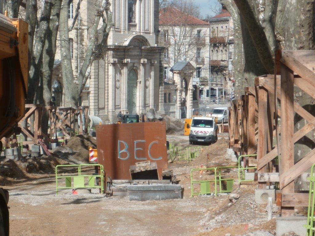 Chantier de bouclage de la ligne 4 de tramway, sur la partie basse du boulevard Henri IV à Montpellier, le lundi 16 mars 2015. Copyright : Edouard Paris
