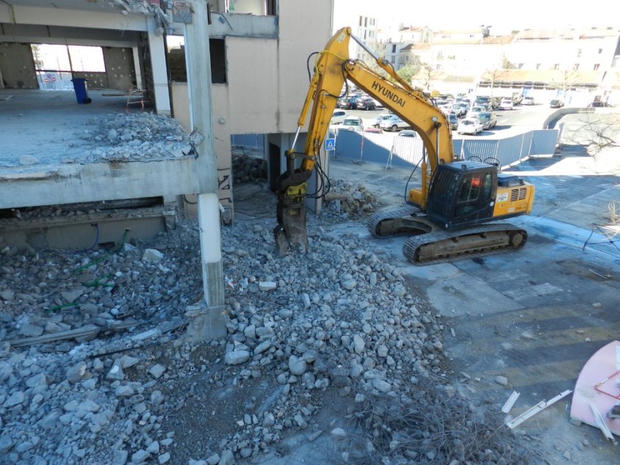 La démolition des anciens bureaux du Sernam à Montpellier, est entrée dans une phase active à la fin du mois de février 2015. Photo prise le samedi 28 février 2015. Copyright : Anje34