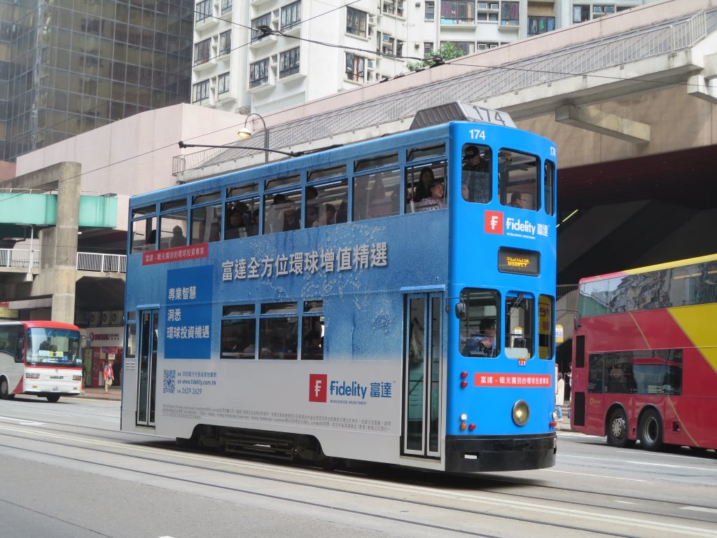 A Hong Kong, livrée Fidelity Worldwide Investment pour la motrice 174. Photo prise le mardi 17 mars 2015. Copyright : DS7