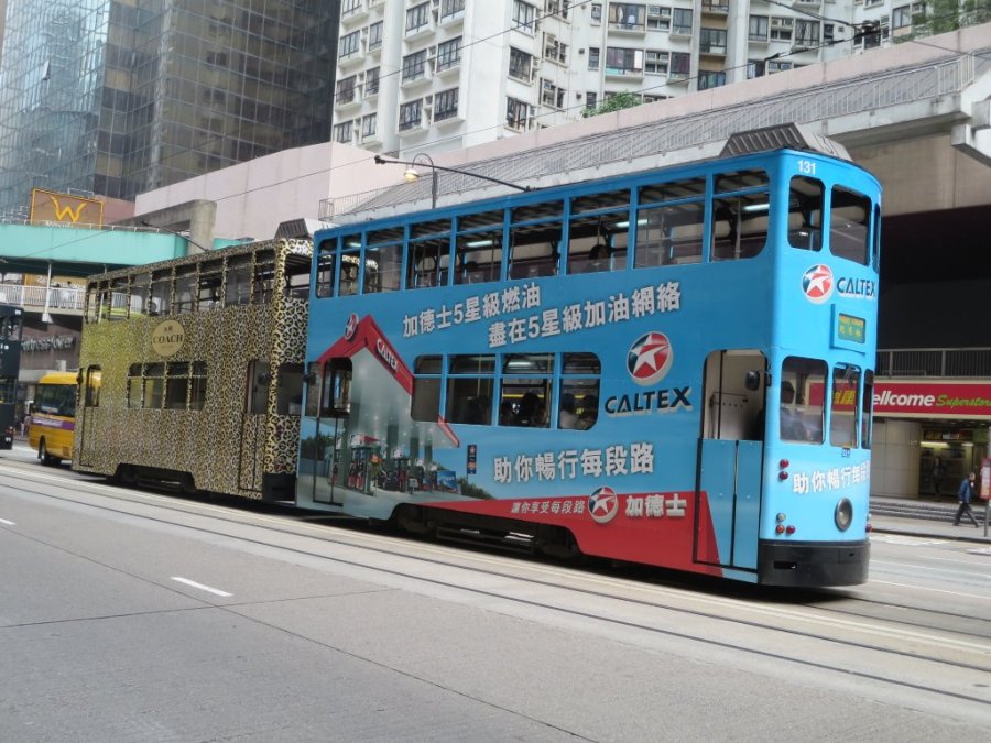 A Hong Kong, livrée Caltex pour la motrice 131. Photo prise le mardi 17 mars 2015. Copyright : DS7