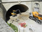 - Décaissement de la chaussée sous le pont Vialleton restauré, le lundi 13 avril 2015. Copyright : Anje34