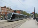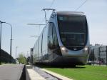 - A Toulouse, toutes les rames Citadis 302 Alstom exploitées sur T1 et T2 sont siglées « design by AIRBUS ». Photo prise le mercredi 15 avril 2015. Copyright : Edouard Paris