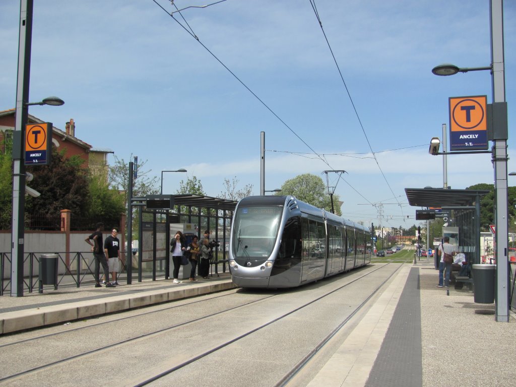 A Toulouse, vue de la station « Ancely » commune aux lignes T1 et T2, en direction du rond-point Jean-Maga, le mercredi 15 avril 2015. Copyright : Edouard Paris