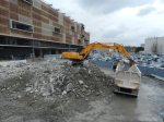 - Sur l’emplacement du bâtiment démoli des anciens bureaux du Sernam à Montpellier, la pelle mécanique va faire place nette. Photo prise le lundi 13 avril 2015. Copyright : Anje34