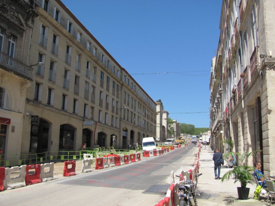 Photographie de l’avancement des travaux dans le cadre du bouclage de la ligne 4 de tramway, boulevard Ledru-Rollin à Montpellier, le mardi 21 avril 2015. Copyright : Edouard Paris