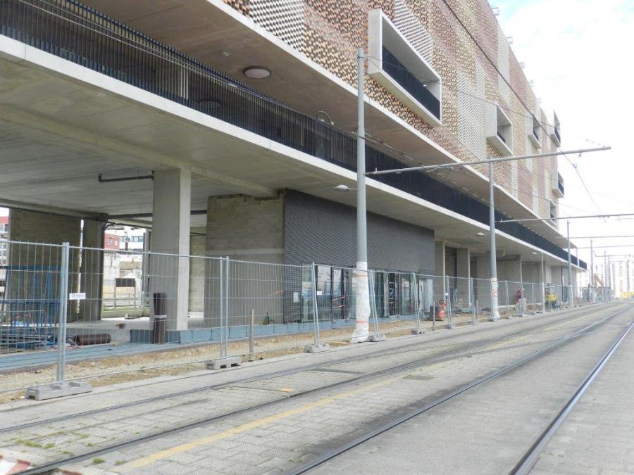 Niveau rez-de-chaussée du futur parking silo Le Nouveau Saint-Roch à Montpellier, vu depuis la rue Alexandra David-Néel, le jeudi 23 avril 2015. Copyright : Anje34
