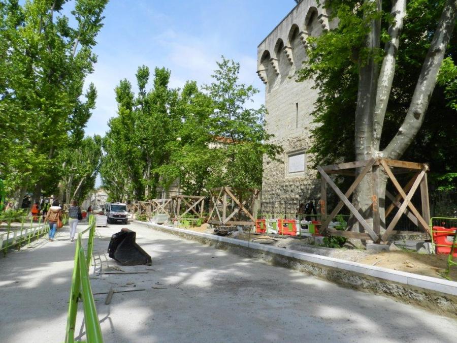 Boulevard Henri IV, à la hauteur de la Tour des Pins, béton de propreté coulé en attente de la livraison des rails. Photo prise le jeudi 30 avril 2015. Copyright : Anje34