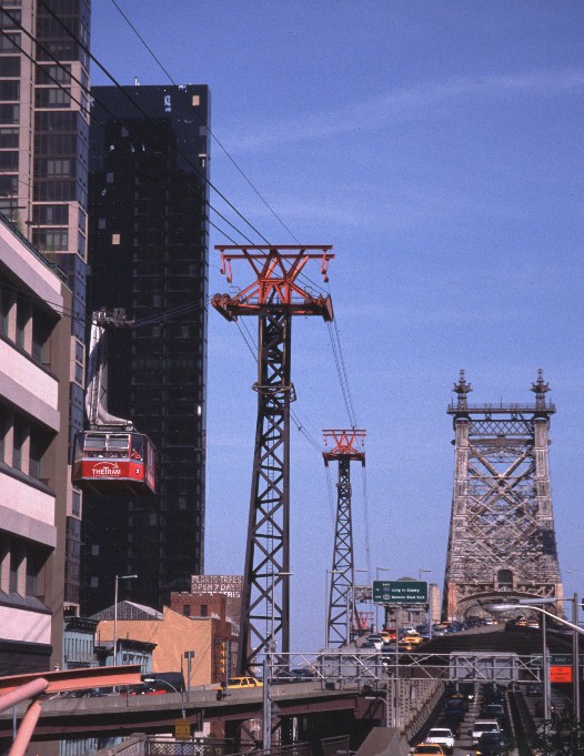 Une des deux cabines de l’ancienne version du tramway aérien de New York City Roosevelt Island, photographiée le jeudi 30 mai 2002. Copyright : Edouard Paris
