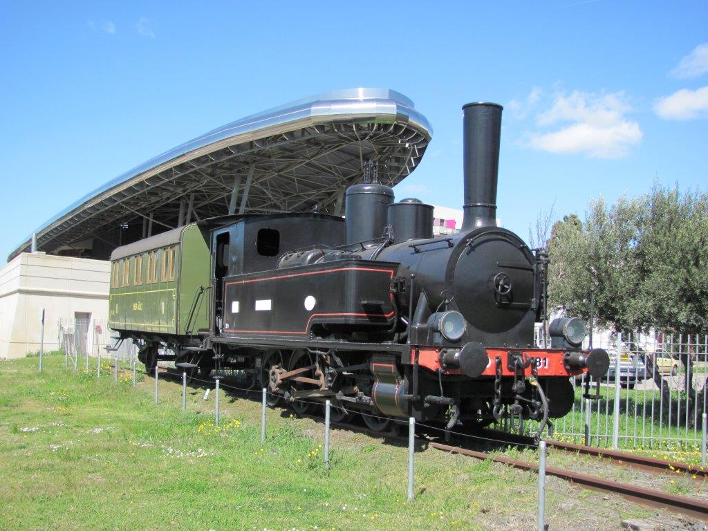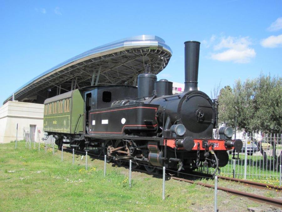 Locomotive Schneider 040T D-81 et voiture Cfx-218 du Petit Train de Palavas exposées à la hauteur du rond-point des Prés d’Arènes à Montpellier. Photo prise le mercredi 1er avril 2015. Copyright : Edouard Paris