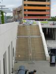 - Les escaliers faisant le lien entre la partie du parvis restant à aménager et le Pont-de-Sète sont provisoirement fermés. Photo prise le vendredi 8 mai 2015. Copyright : Anje34