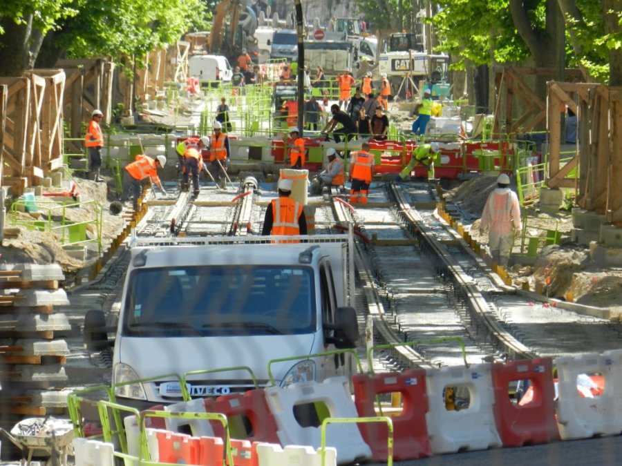 A Montpellier, zoom sur le boulevard Henri IV en pleine effervescence depuis la place Albert 1er, le mardi 12 mai 2015. Copyright : Anje34