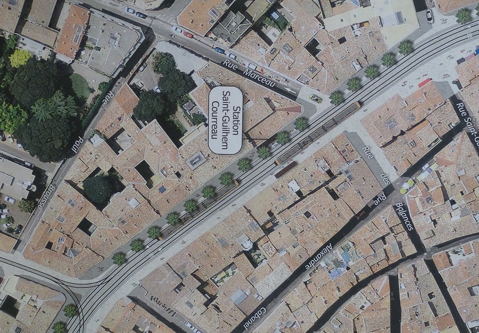 Situation après bouclage terminé de la ligne 4 de tramway, boulevard du Jeu-de-Paume, entre la rue André-Michel et la rue Marceau. Document non contractuel : Egis Rail