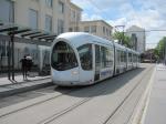 - La rame 805 Citadis 302 Alstom, opérant sur le T2, arrive à la station « Grange Blanche » commune aux lignes T2 et T5 dont c’est le terminus pour cette dernière. Photo prise le samedi 16 mai 2015. Copyright : Edouard Paris