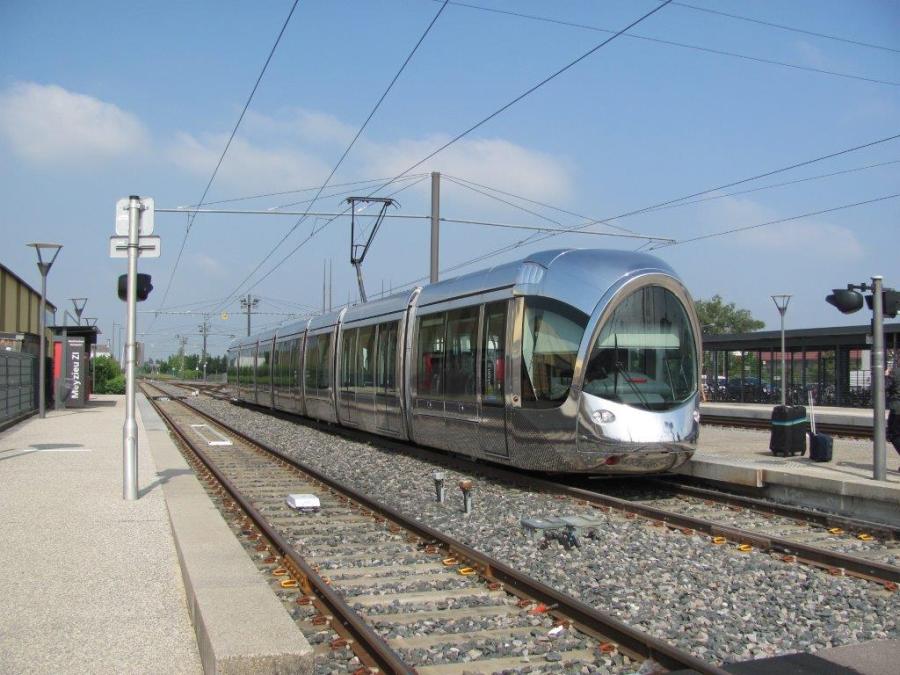 Rame 875 Citadis 402 Alstom du T3 photographiée à la station « Meyzieu Z.I. », le samedi 16 mai 2015. Copyright : Edouard Paris