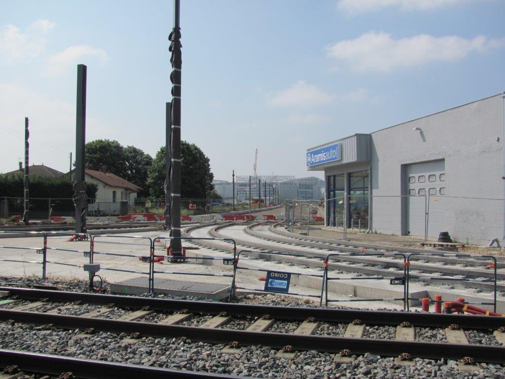 Triangle de voies réalisé à quatre cents mètres à l’est de la station « Décines Grand Large » en vue de la desserte par le T3 du stade des Lumières futur terrain de jeu de l’Olympique Lyonnais. Photo prise le samedi 16 mai 2015. Copyright : Edouard Paris