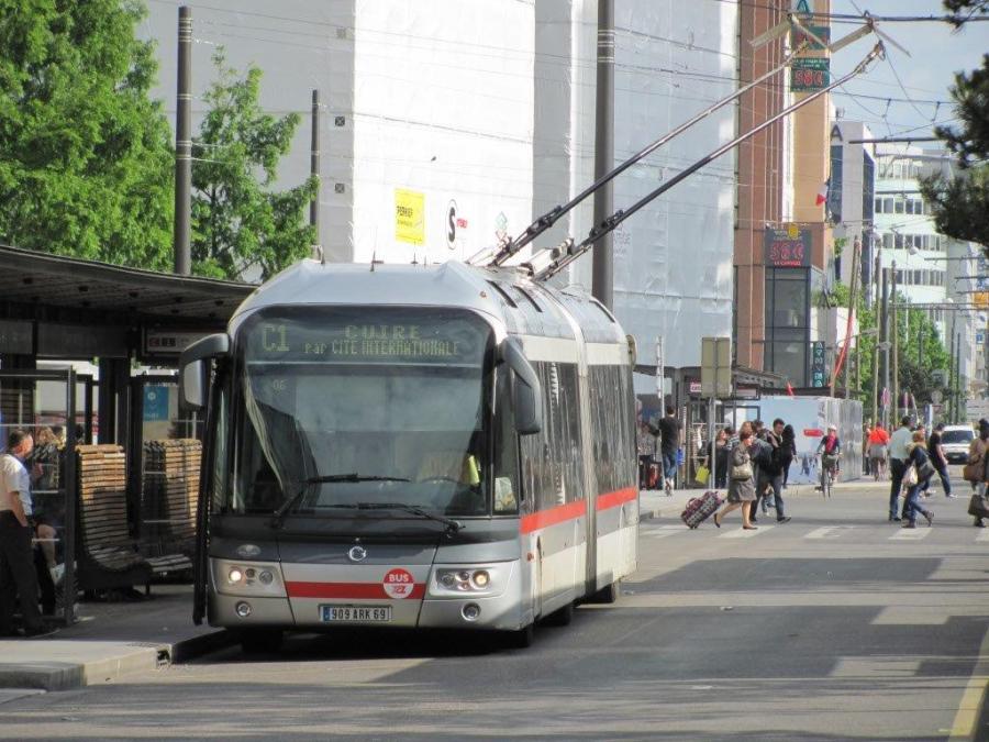 Le trolleybus articulé 2913 Cristalis ETB 18 Irisbus, opérant sur la ligne C1, est photographié à son terminus « Gare Part-Dieu Vivier Merle », le samedi 16 mai 2015. Copyright : Edouard Paris