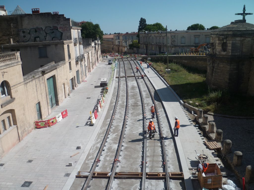 Le béton de calage des voies a été coulé sur la partie sud du boulevard du Professeur Louis-Vialleton à Montpellier. Photo prise le mercredi 27 mai 2015. Copyright : Edouard Paris