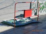 A noter qu’un second panneau est abîmé (le deuxième en partant de la droite sur la troisième photo). Il tient miraculeusement debout grâce aux deux panneaux entre lesquels il est placé qui lui servent d’appui.