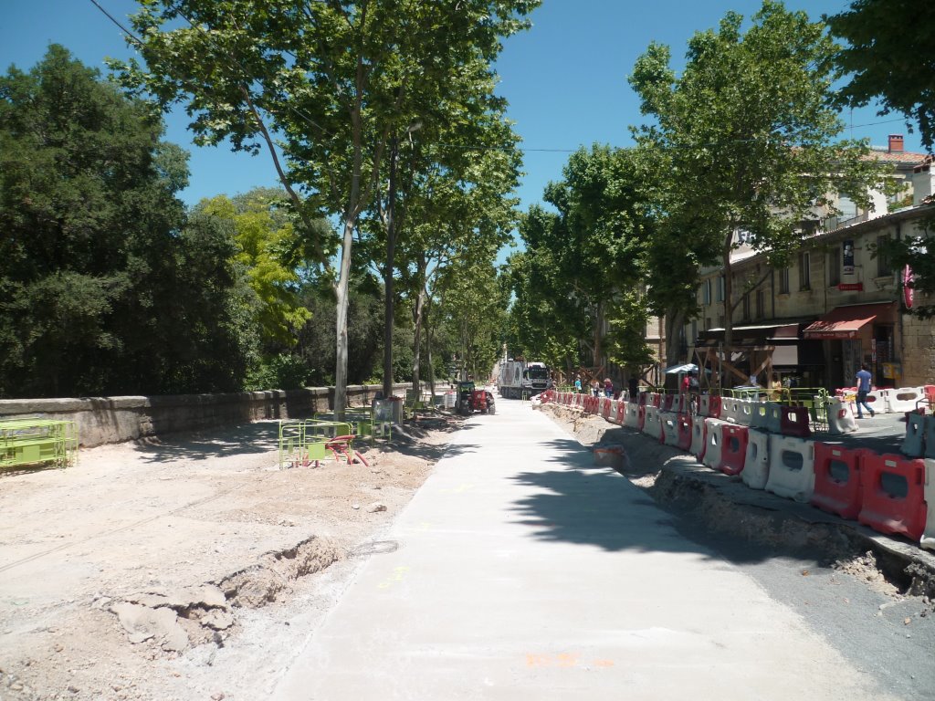 Boulevard Henri IV à Montpellier, entre la rue de l’Ecole de Médecine et la rue du Faubourg Saint-Jaumes, seule la la couche de fondation de la plateforme de la future voie montante a été coulée. Photo prise le vendredi 5 juin 2015. Copyright : Edouard Paris
