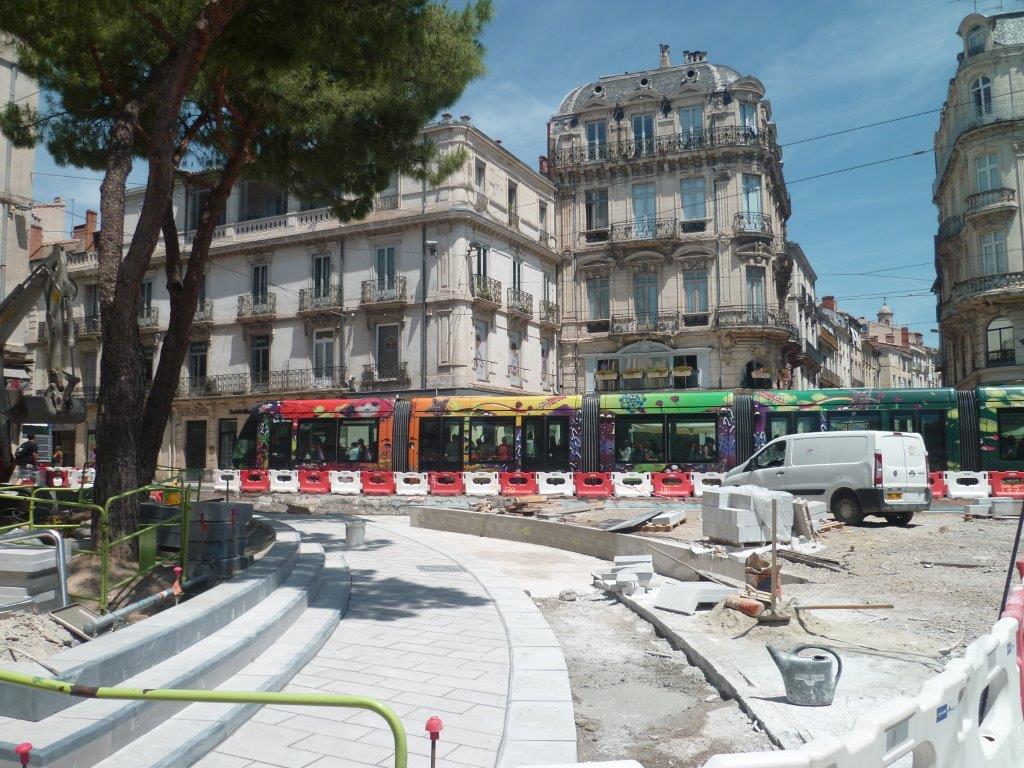 Vue partielle de la place Edouard-Adam à Montpellier prise depuis la rue du Faubourg-de-la-Saunerie, le vendredi 26 juin 2015. Copyright : Edouard Paris